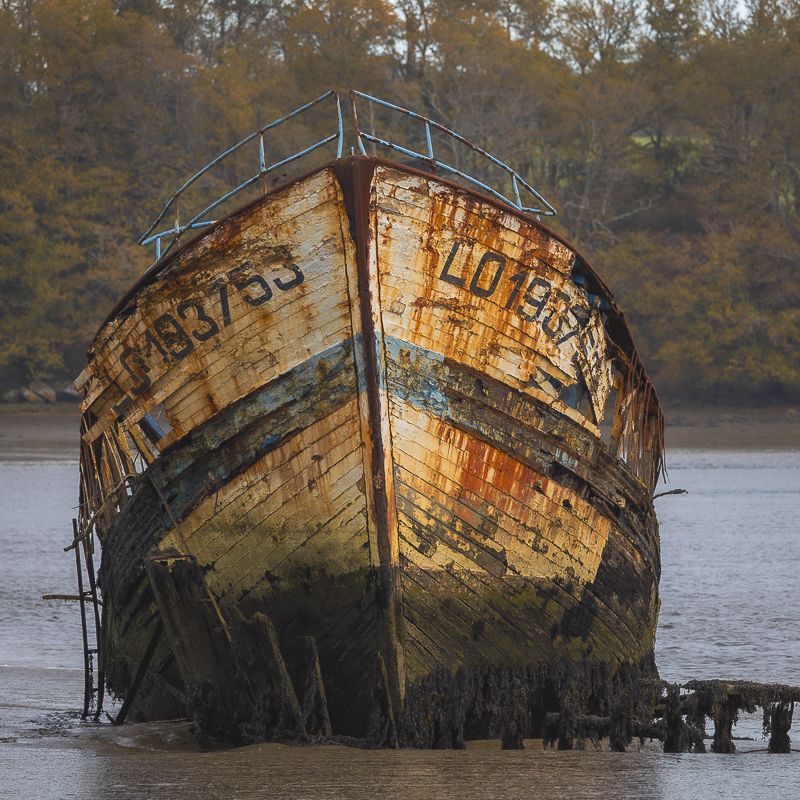 Sortie classique pour les photographes : le cimetière de bateaux, nous avons choisi de découvrir celui de Kerhervy à Lanester à marée basse.